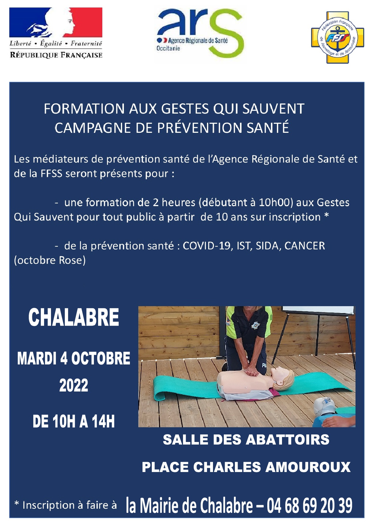 Médecins du Monde sera présent à Chalabre ce vendredi 1er avril matin, dans les locaux des Restos du Coeur, situés derrière La Poste.